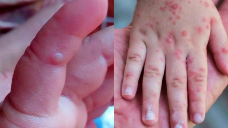 La enfermedad se manifiesta con salpullido en manos y pies y llagas dolorosas en la boca (exterior, encías, lengua, paladar); es causada principalmente por el virus Coxsackie A 16 y algunos otros virus pertenecientes a la misma familia.