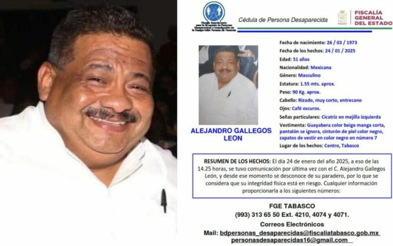 “Condenamos la desaparición y el asesinato del periodista Alejandro Gallegos León en #Tabasco, quien fue visto por última vez ayer y localizado sin vida esta mañana en el municipio de Cárdenas”, señaló la ONU-DH en un mensaje en redes sociales.