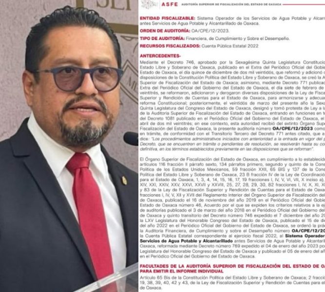 Conforme al informa individual de auditoría, la ASFE detectó que SAPAO a cargo Hernández Cuevas en el sexenio de Alejandro Murat, no cumplió con las normas aplicables en el ejercicio del gasto público.