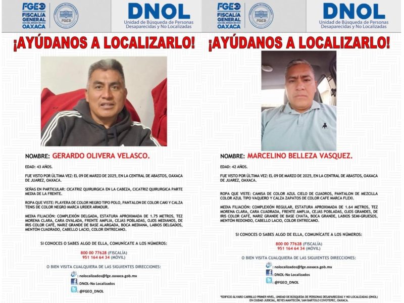 Oaxaca de Juárez, Oax., a 10 de marzo de 2025.- Como Marcelino Belleza Vásquez, de 42 años de edad, y Gerardo Olivera Velasco, de 43 años, fueron identificadas las personas ejecutadas hoy en la ciudad de Oaxaca.