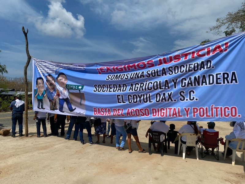 Por su parte, integrantes de la Sociedad Agrícola y Ganadera El Coyul Oax demandaron al Gobierno del Estado frene a un grupo de habitantes de esa comunidad que se hacen pasar por integrantes de la agrupación y pretenden despojar de sus terrenos que contemplan una extensión de más de mil hectáreas, argumentando que son herederos de los fundadores de la sociedad agrícola.