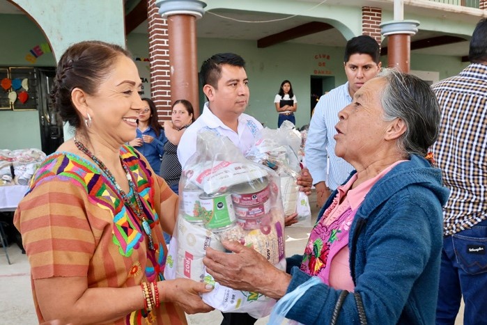 Asimismo, las y los habitantes recibieron lentes de vista cansada; las mujeres mayores recibieron rebozos y la niñez un juguete en garantía a su derecho al juego y al esparcimiento.