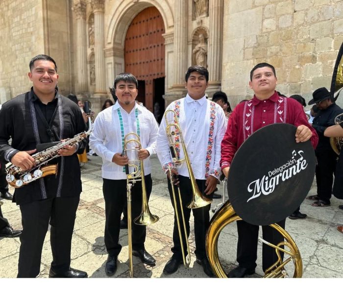 La llegada de la delegación migrante, dijo el diputado migrante Zeferino García, se propuso al gobierno estatal y este aceptó para que participe en las fiestas de «Julio, mes de la Guelaguetza». Previo a su presentación, confirmada por el secretario de las Culturas y Artes, Flavio Sosa Villavicencio, regalaron este concierto en el atrio de Santo Domingo de Guzmán.