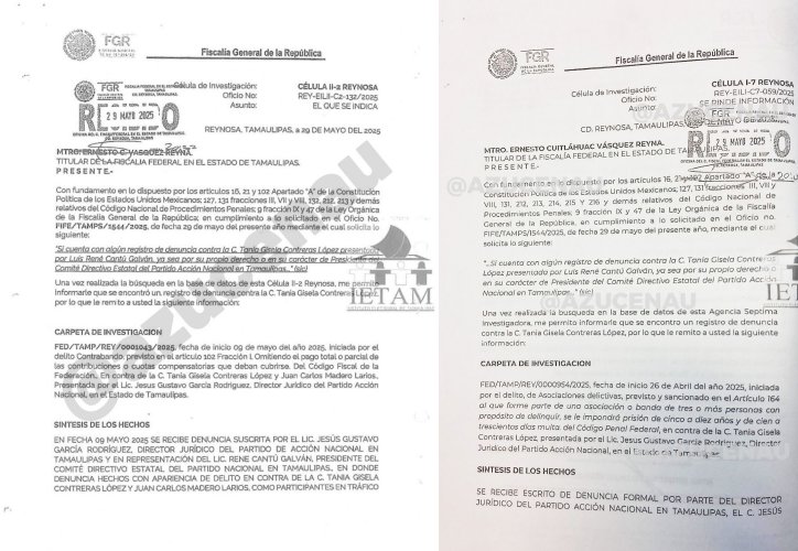 De acuerdo con “El Universal”, la carpeta de investigación FED/TAMP/REY)0000954/2025 detalla que Vásquez Reyna investigaba a Tania Contreras y a Juan Carlos Madero Larios, exdirector del Centro de Operaciones de Aduanas, quien está acusado de presunto tráfico ilegal de hidrocarburos.