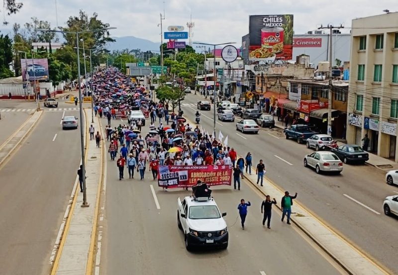 Con una marcha representativa que salió de la carretera federal 190 al Istmo, en el crucero hacia Tuxtepec hacia el zócalo de la ciudad de Oaxaca, así como un mitin, la gremial externó su rechazo al informe, que coincidió con el inicio del ciclo escolar 2025-2026.