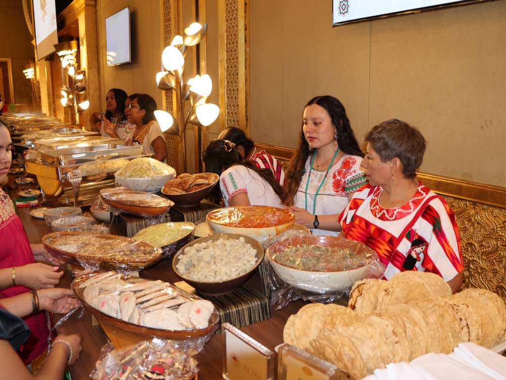 Oaxaca, Oax., a 18 de septiembre de 2025.- Cocineras tradicionales de la región Mixteca de Oaxaca llevaron la gastronomía de este estado a los Emiratos Árabes Unidos, en donde conquistaron paladares durante los festejos por el Día de la Independencia de México.
