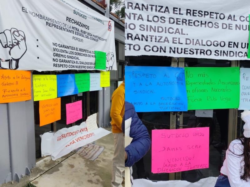 Docentes pertenecientes al Sindicato Único de Trabajadores Docentes del Conalep Oaxaca (SUTDCEO) realizaron una jornada de brazos caídos en los cinco planteles de la entidad —Juchitán, Salina Cruz, Puerto Escondido, Oaxaca de Juárez y Huajuapan de León— en respaldo a las demandas del plantel 157 “Dr. Víctor Bravo Ahuja” de Tuxtepec. Entre sus exigencias destacan la destitución del director de dicho plantel, la mejora urgente de la infraestructura eléctrica y la salida de la delegada estatal, Rubí Vega, acusada de corrupción, desvío de recursos y maltrato hacia estudiantes.