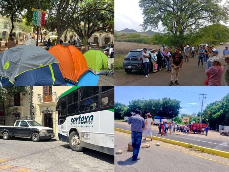 En tanto que en la vía de acceso a la zona arqueológica de Yagul, un grupo de personas del municipio de Tlacolula de Matamoros bloqueó por unas horas el paso vehicular, para denunciar despojos de predios.