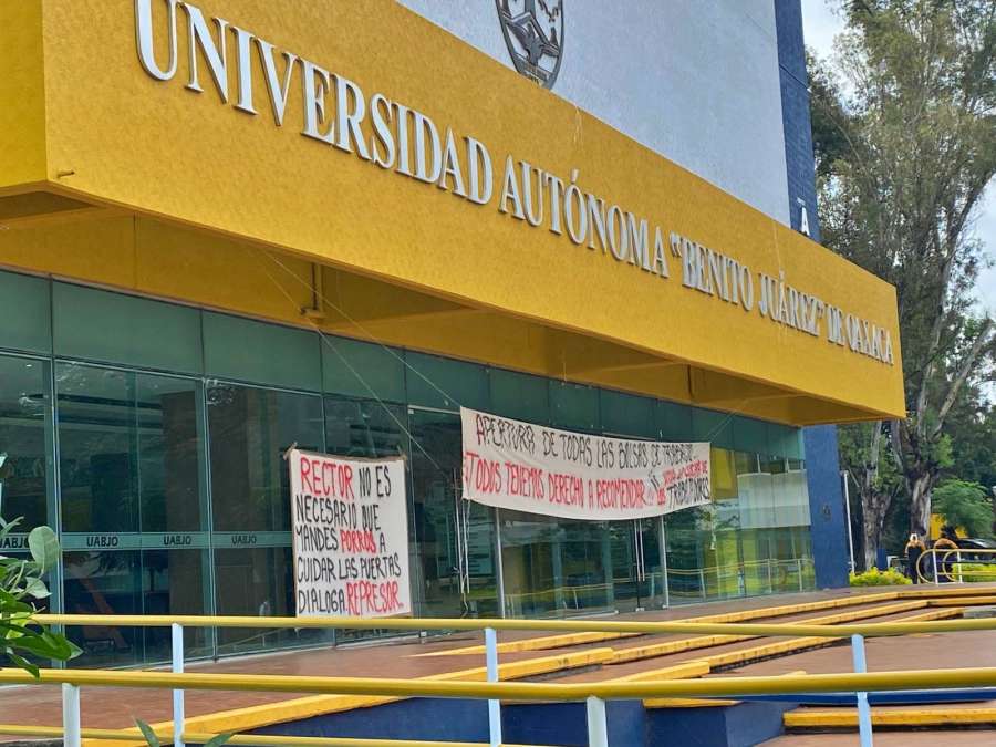 “Rector no es necesario que mandes porros a cuidar las puertas; dialoga represor”, respondieron los integrantes del Sindicato de Trabajadores y Empleados de la UABJO, quienes después del mediodía cerraron todas las instalaciones universitarias y desalojaron a los alumnos.