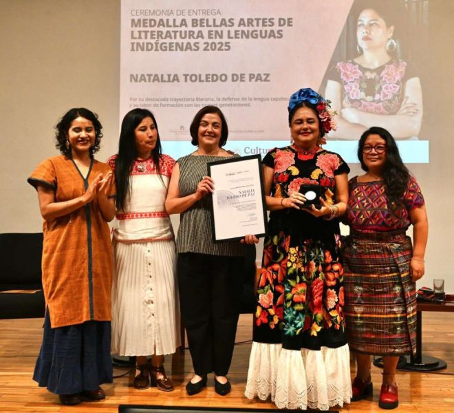 Desde el Palacio de Bellas Artes, en la Ciudad de México, las palabras de la autora de «Guie’ yaase» (Olivo negro) y «Deche bitoope» (El dorso del cangrejo) generaron en sí y los presentes varias emociones. También algunas risas que rompieron con la solemnidad.
