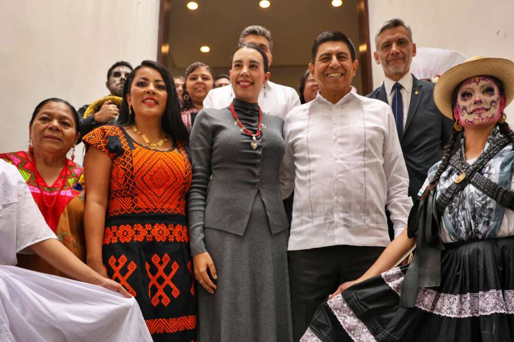 Desde el Complejo Cultural Los Pinos, en la Ciudad de México, el gobernador Salomón Jara Cruz invitó a las personas de México y el mundo a visitar el corazón cultural, lingüístico y gastronómico de México, para que se impregnen de las tradiciones de los pueblos oaxaqueños, que honran la memoria de quienes ya no están, con una celebración solemne, alegre y colorida.
