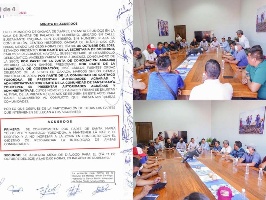 Oaxaca, Oax., a 9 de octubre de 2025.– El gobierno de Oaxaca señaló la falta de compromiso y respeto a los acuerdos de paz por parte de las comunidades de Santa María Yolotepec y Santiago Yosondúa.