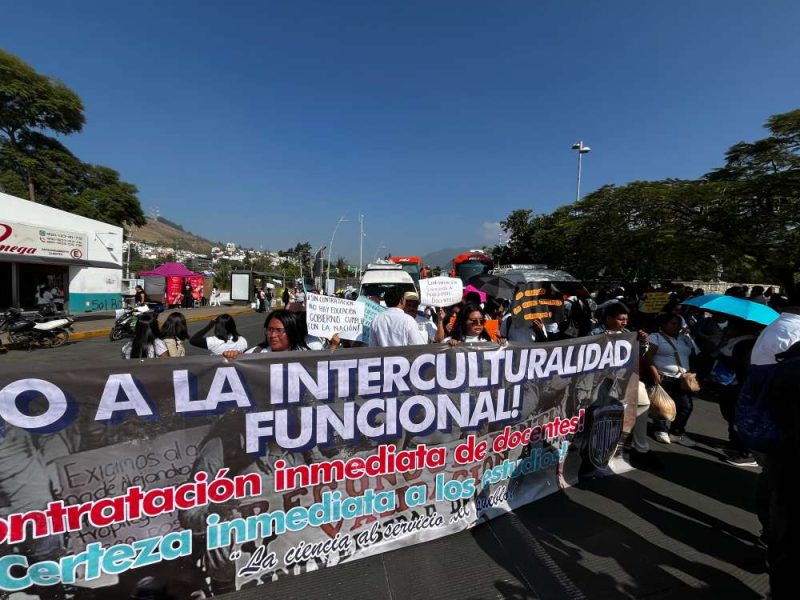 Oaxaca, Oax., a 21 de noviembre de 2025.- Con una marcha en la ciudad de Oaxaca, docentes y alumnos de la unidad Chiltepec de la Universidad Intercultural del Pueblo del estado de Oaxaca exigen a la rectora, Sofonías Milca Antonio González, y al gobierno estatal certeza académica y laboral.