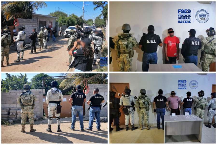 Oaxaca, Oax., a 27 de noviembre de 2025.- La Fiscalía General del Estado de Oaxaca e instituciones federales ejecutaron órdenes de cateo en la región del Istmo de Tehuantepec, logrando la detención de dos personas del sexo masculino, así como el aseguramiento de diversas dosis de drogas y objetos constitutivos del delito.