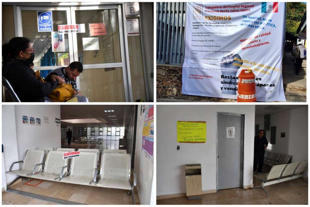 Oaxaca, Oax., a 1 de diciembre de 2025.- Trabajadores del hospital regional «Presidente Juárez» del Instituto de Seguridad y Servicios Sociales de los Trabajadores del Estado (ISSSTE) en Oaxaca iniciaron este lunes un paro parcial e indefinido de labores ante las carencias de infraestructura, de personal y de otras necesidades de la unidad.