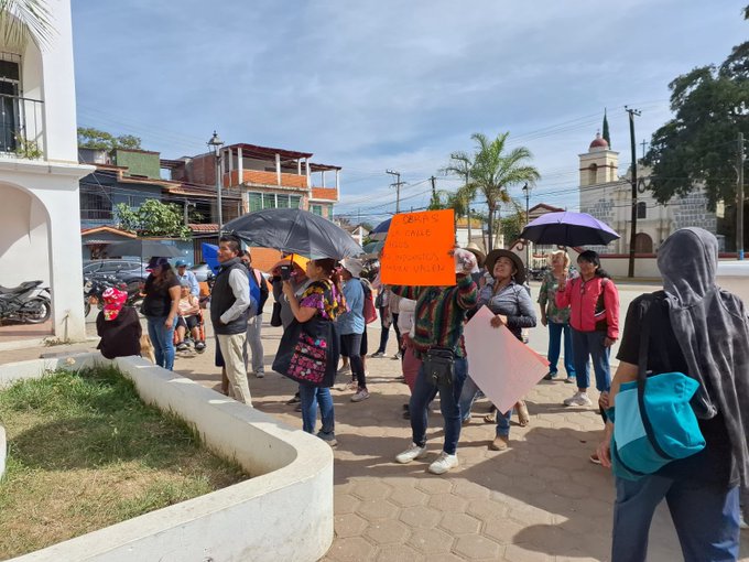 Oaxaca, Oax., a 1 de diciembre de 2025.- Habitantes de Santa Cruz Amilpas, municipio cercano a la ciudad de Oaxaca, se manifestaron este lunes en el palacio municipal para exigir al presidente Christian Baruch Castellanos garantizar la recolección de desechos, el servicio de agua potable y la ejecución de la obra pública.