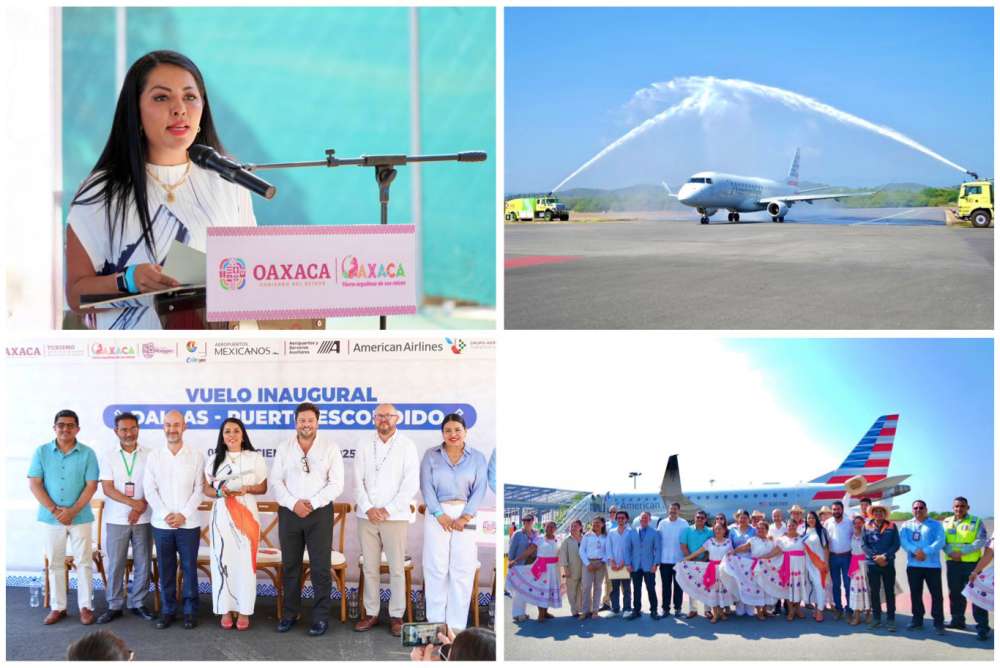 Oaxaca, Oax., a 3 de diciembre de 2025.- Este miércoles, Puerto Escondido recibió su segundo vuelo internacional, ahora desde Dallas, Texas, un avance que fortalece la proyección turística y económica de la Costa.