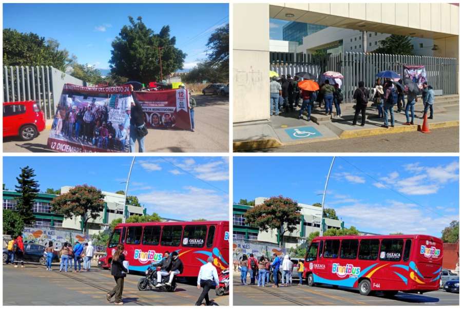Oaxaca, Oax., a 9 de diciembre de 2025.- En dos protestas diferentes, este martes docentes de la Sección 22 y trabajadores del gobierno estatal afectados por el decreto 24 volvieron a manifestarse en el estado de Oaxaca.