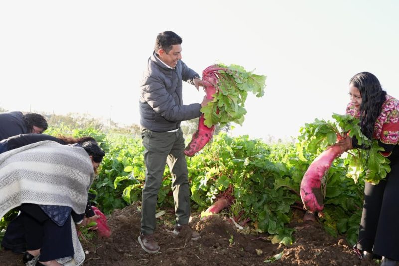 Oaxaca, Oax., a 21 de diciembre de 2025.- Desde temprana hora, el gobernador Salomón Jara Cruz acompañó a familias hortelanas a la cosecha de más de 14 toneladas de tubérculos, los cuales serán utilizados en la tradicional Noche de Rábanos, que se celebra cada 23 de diciembre en el zócalo capitalino.