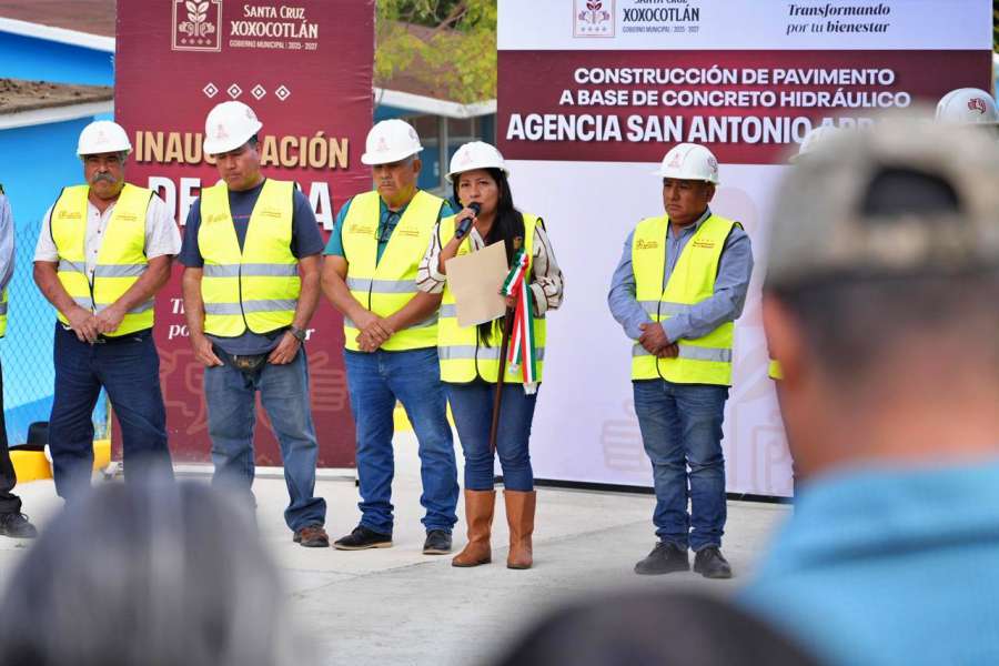 Oaxaca, Oax., a 27 de diciembre.- La presidenta municipal de Santa Cruz Xoxocotlán, Nancy Benítez Zárate, entregó más de 600 metros de pavimento con concreto hidráulico en la calle Libertad, una obra que beneficia a más de 200 familias de la agencia de San Antonio Arrazola.