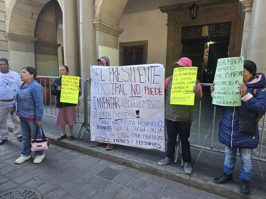 Con una protesta frente al Palacio de Gobierno, ciudad de Oaxaca, este lunes un grupo de habitantes de dicha comunidad de la región Mixteca externó su rechazo con la elección de Eduardo García Santiago como nuevo presidente municipal.