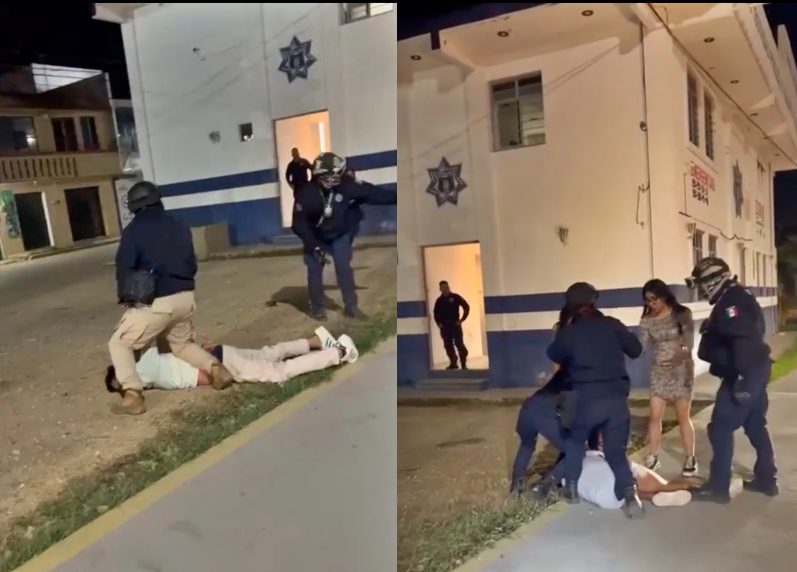 A través de un video que circula en redes sociales, se observa cómo al menos cuatro policías someten a un hombre y una mujer cerca de las instalaciones de la corporación.