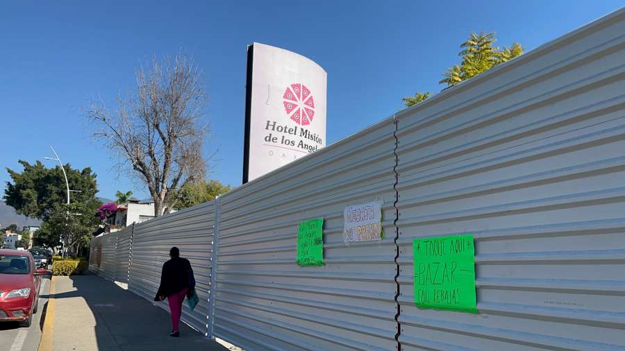 La zona en que operó el hotel “Misión de los Ángeles” y en la que se edificará el centro comercial permanece únicamente cercada con láminas.
