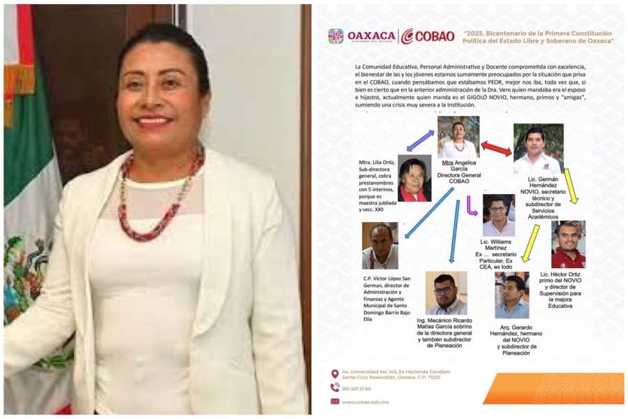 Oaxaca, Oax., a 8 de enero de 2025.- La comunidad académica, administrativa y de padres de familia denunció de nuevo presuntos actos de nepotismo y corrupción en el Colegio de Bachilleres del Estado de Oaxaca (Cobao), que preside Angélica García Pérez.