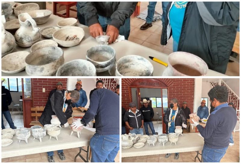 Cada objeto arqueológico fue etiquetado y registrado fotográficamente, en seguimiento a los protocolos correspondientes para su inscripción en el Sistema Único de Registro Público de Monumentos y Zonas Arqueológicos e Históricos; a la par, se informó a la comunidad sobre los trabajos preliminares de documentación y limpieza que deberán realizarse.