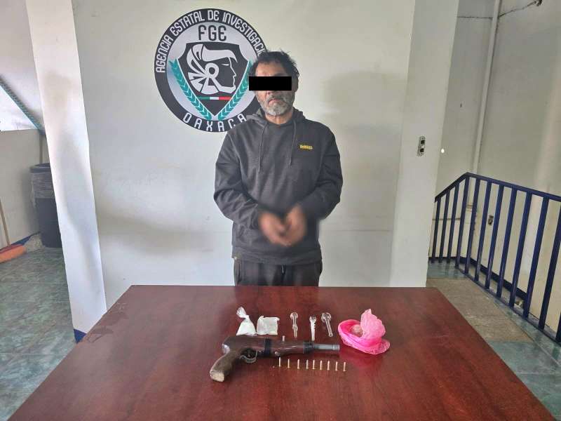 Oaxaca, Oax., a 21 de enero de 2026.- La Fiscalía General del Estado de Oaxaca (FGEO) logró la detención de una persona del sexo masculino, identificada como B. R. G., por los delitos de violencia familiar, resistencia de particulares y delitos contra la salud.