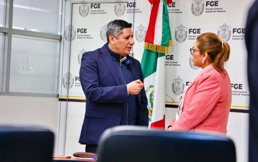 Oaxaca, Oax., a 23 de enero de 2026.- El Fiscal General del Estado de Oaxaca, Bernardo Rodríguez Alamilla, sostuvo una reunión de trabajo con su homóloga de Veracruz, Lisbeth Aurelia Jiménez Aguirre.
