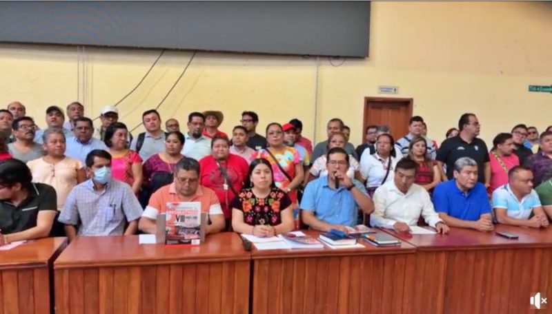 Al cancelarse la Asamblea Estatal de hoy, por falta de quórum, la dirigencia estatal encabezada por Yenny Aracely Pérez Martínez fijó en conferencia de prensa un posicionamiento respecto al proceso de este 25 de enero, en que los oaxaqueños deberán decidir si el mandatario Salomón Jara Cruz continúa en el cargo hasta finalizar su sexenio o se le revoca por pérdida de confianza.