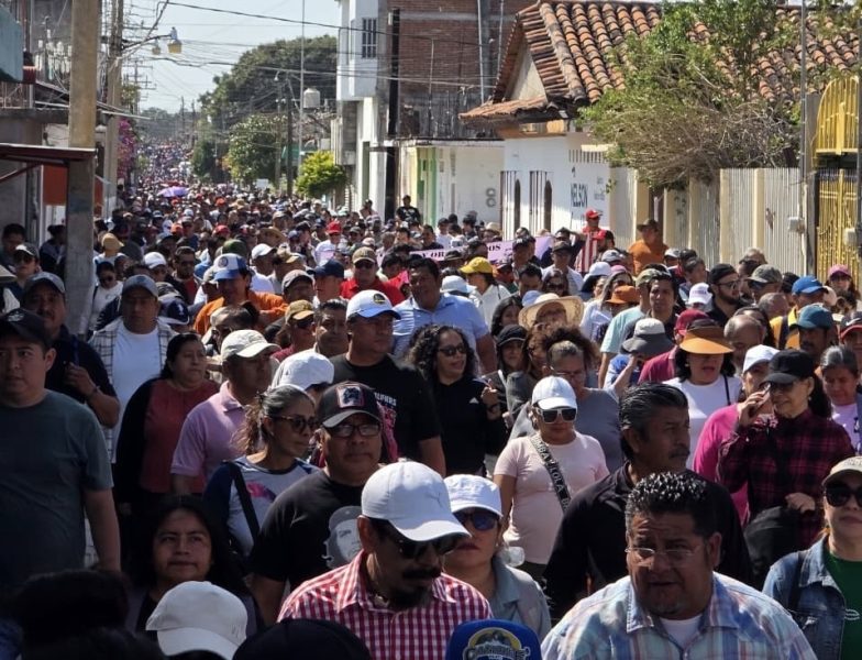 Oaxaca, Oax., a 30 de enero de 2026.- Con una marcha masiva regional, este viernes docentes de la Sección 22 del Sindicato Nacional de Trabajadores de la Educación (SNTE) marcharon en Ciudad Ixtepec para denunciar el asedio del crimen organizado a la educación, a través del cobro de piso a una institución.
