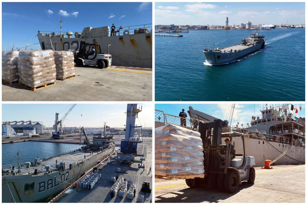 Agregó que el buque “Papaloapan” transporta alimentos de primera necesidad, entre los que destacan leche líquida, productos cárnicos, galletas, frijol, arroz, atún en agua, sardina y aceite vegetal, así como artículos de higiene personal, con una carga de alrededor de 536 toneladas de esos bienes.