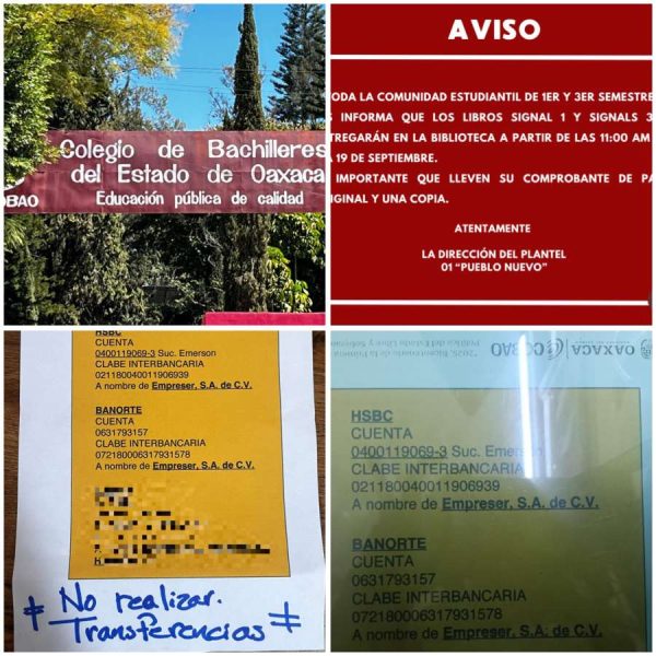 Los pagos se realizaron en bancos como BBVA, HSBC, Banco Azteca, BanCoppel y Spin, con la advertencia de que sin comprobante de pago, los alumnos no podrían entrar a clases de inglés.