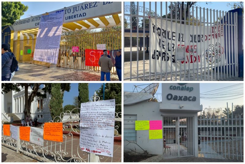 Oaxaca, Oax., a 16 de febrero de 2026.- Al menos cuatro paros de labores se registran este lunes en diversas instituciones educativas del estado de Oaxaca, lo que afecta a miles de estudiantes del nivel medio superior y superior de la Universidad Autónoma “Benito Juárez” de Oaxaca (UABJO), del Colegio Nacional de Educación Profesional Técnica (Conalep), del Centro de Bachillerato Tecnológico Industrial y de Servicios (CBTIS) y de las escuelas Normales.