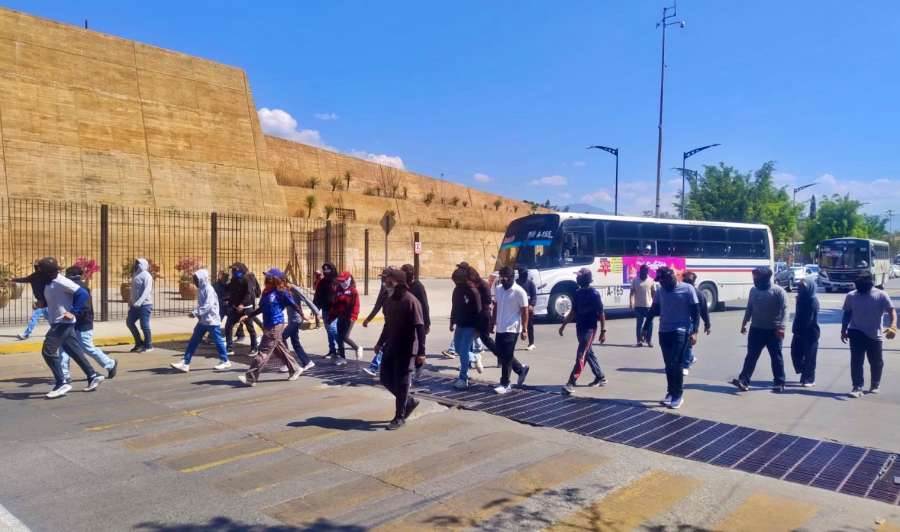 Oaxaca, Oax., a 7 de marzo de 2026.- La tarde de ayer concluyó la mesa de negociación con estudiantes normalistas, tras lo cual de nueva cuenta huyeron con al menos cinco camiones del transporte público.
