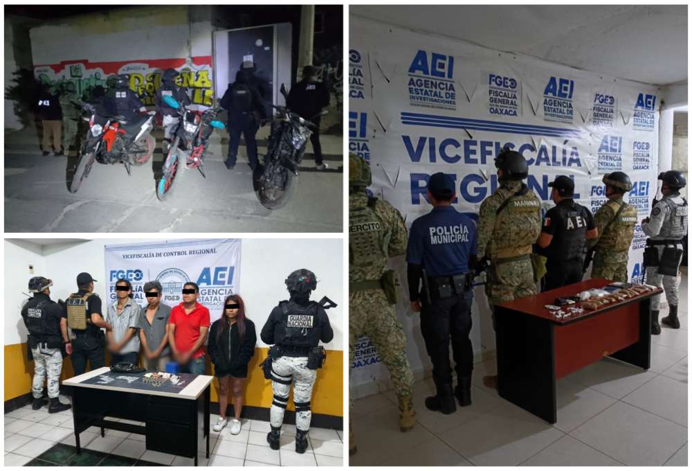 En las acciones participaron elementos de la Agencia Estatal de Investigaciones (AEI), adscritos a la Comandancia de Delitos de Alto Impacto, con apoyo de personal de la Secretaría de la Defensa Nacional (DEFENSA), Secretaría de Marina (SEMAR), Guardia Nacional (GN) y Policía Municipal de San Pedro Mixtepec.
