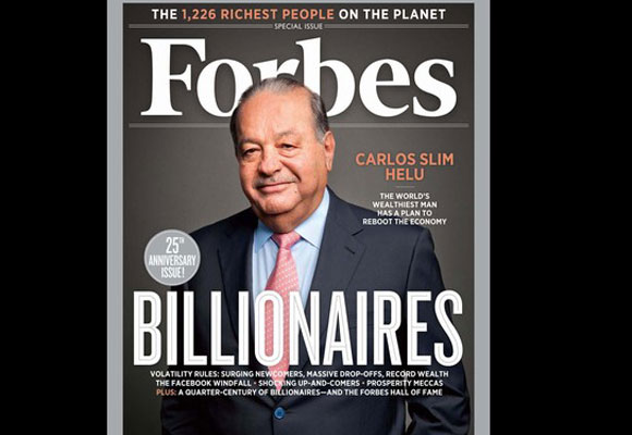 Como cada año, la lista de multimillonarios en México es encabezada por Carlos Slim Helú y familia. Su fortuna trepó hasta 125 mil millones de dólares, la decimosexta del mundo.