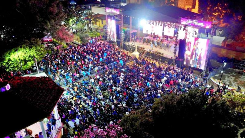 La noche avanza y llega el momento esperado: Germán Montero, el reconocido cantante de banda, famoso por su genialidad al fusionar la música tradicional con ritmos modernos, aparece en el escenario y el Parque Central estalla en aplausos.