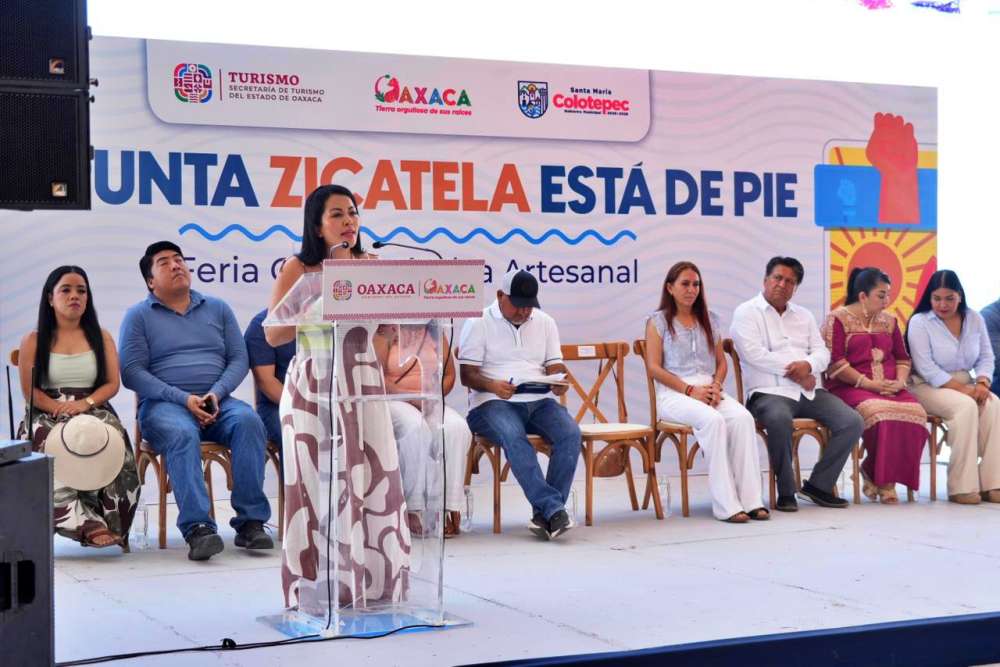 Oaxaca, Oax., a 3 de abril de 2026.- Para reactivar la economía de las familias prestadoras de servicios turísticos afectadas por el incendio registrado el pasado mes de marzo, el Gobierno del Estado a través de la Secretaría de Turismo (Sectur Oaxaca) inauguró la feria gastronómica y artesanal “Punta Zicatela está de pie” en Puerto Escondido.