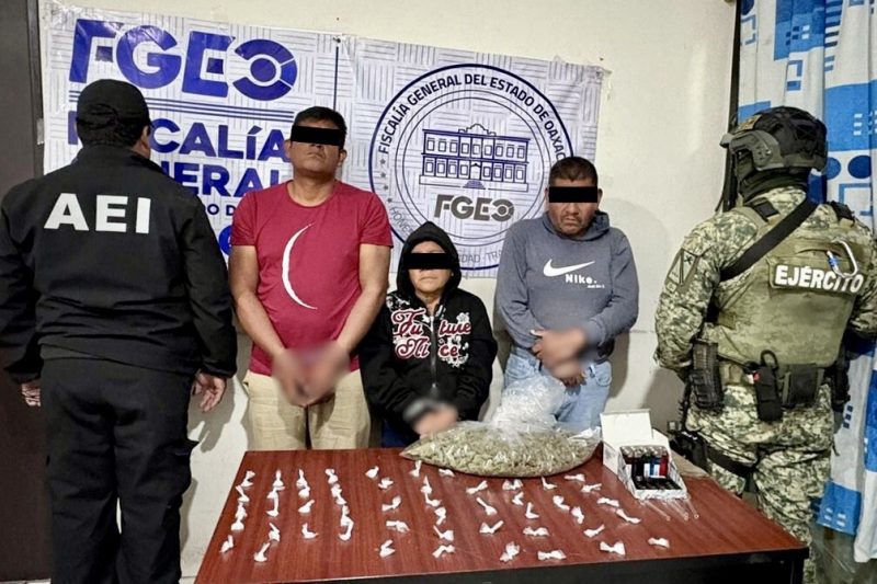 Oaxaca, Oax., a 3 de abril de 2026.- La Fiscalía General del Estado de Oaxaca (FGEO) obtuvo la vinculación a proceso de tres personas —dos hombres identificados como G.T.Z. y G.F.M., así como una mujer identificada como D.L.H.— por el delito contra la salud en su modalidad de narcomenudeo, quienes fueron detenidos durante la ejecución de un cateo en el distrito de Tlacolula.