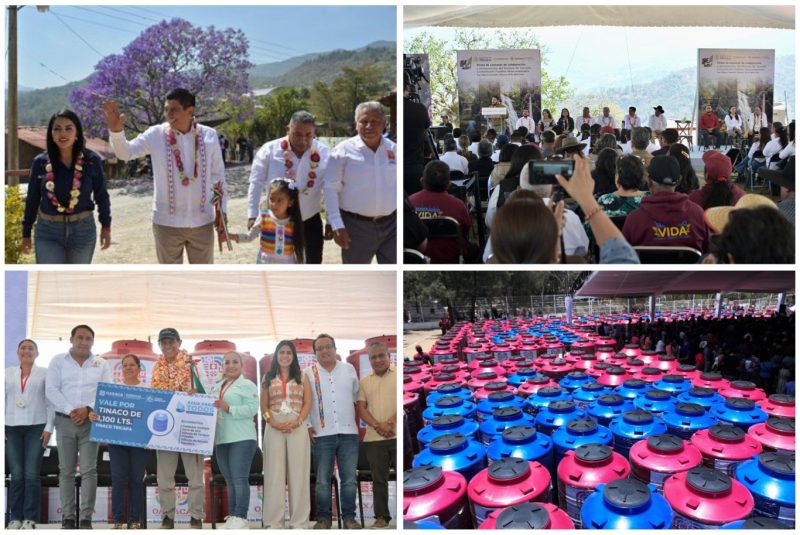 En otro acto efectuado en la región Valles Centrales, el titular del Poder Ejecutivo entregó mil 37 tinacos para el almacenamiento de agua durante esta temporada de estiaje, al mismo número de familias de San Antonio de la Cal y del fraccionamiento El Rosario, San Sebastián Tutla.