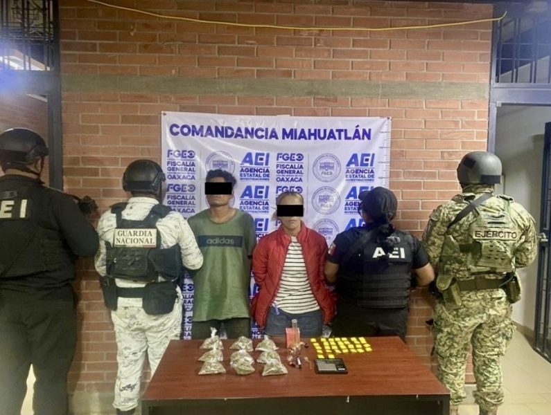 Oaxaca, Oax., a 30 de abril de 2026.- Derivado de trabajos de inteligencia criminal enfocados en el combate al narcomenudeo, la Fiscalía General del Estado de Oaxaca (FGEO) dio cumplimiento a tres órdenes de cateo ejecutadas de manera coordinada en la región de la Sierra Sur, acciones que derivaron en la detención de tres personas y el aseguramiento de diversas sustancias y objetos relacionados con posibles actividades ilícitas.